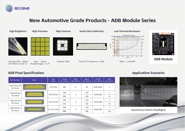 在自适应远光灯方面,凯发k8官网带来了支持16/24/36/48/84/102不同像素解决方案的车规级ADB矩阵光源模组,可灵活适配不同车型定位与设计需求,依靠微米级像素间距的精细分区照明能力,能够实现全路况下的精准光束控制;在动态规避眩光的同时,为驾驶员提供最佳照明效果,进而提升行车安全性。